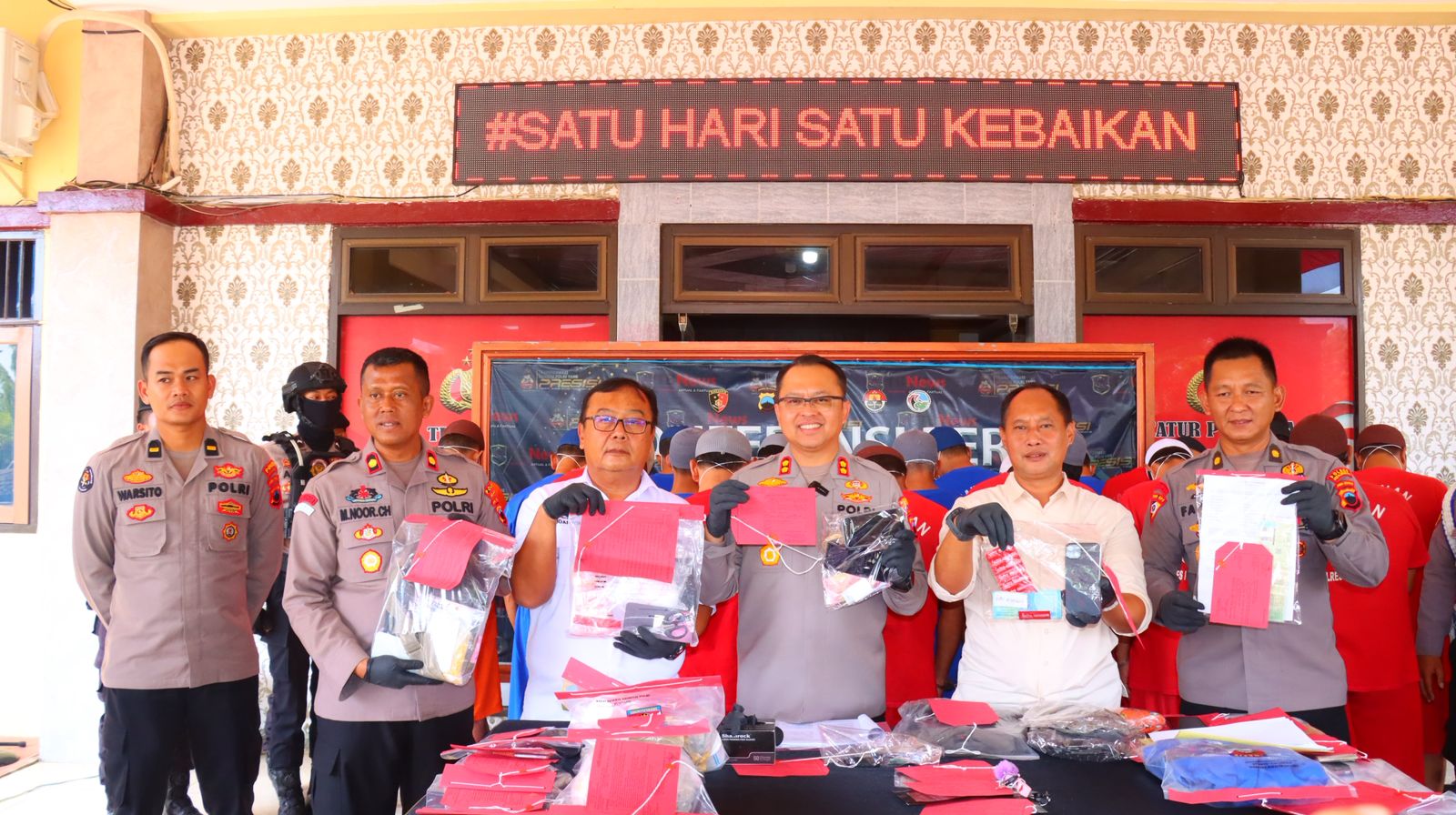 “Dalam kurun waktu 30 hari terakhir, Polres Pekalongan berhasil mengungkap 5 kasus tindak pidana umum dan 3 kasus narkoba. Semua tersangka sudah kami amankan di Mapolres Pekalongan,” tambah Kapolres.