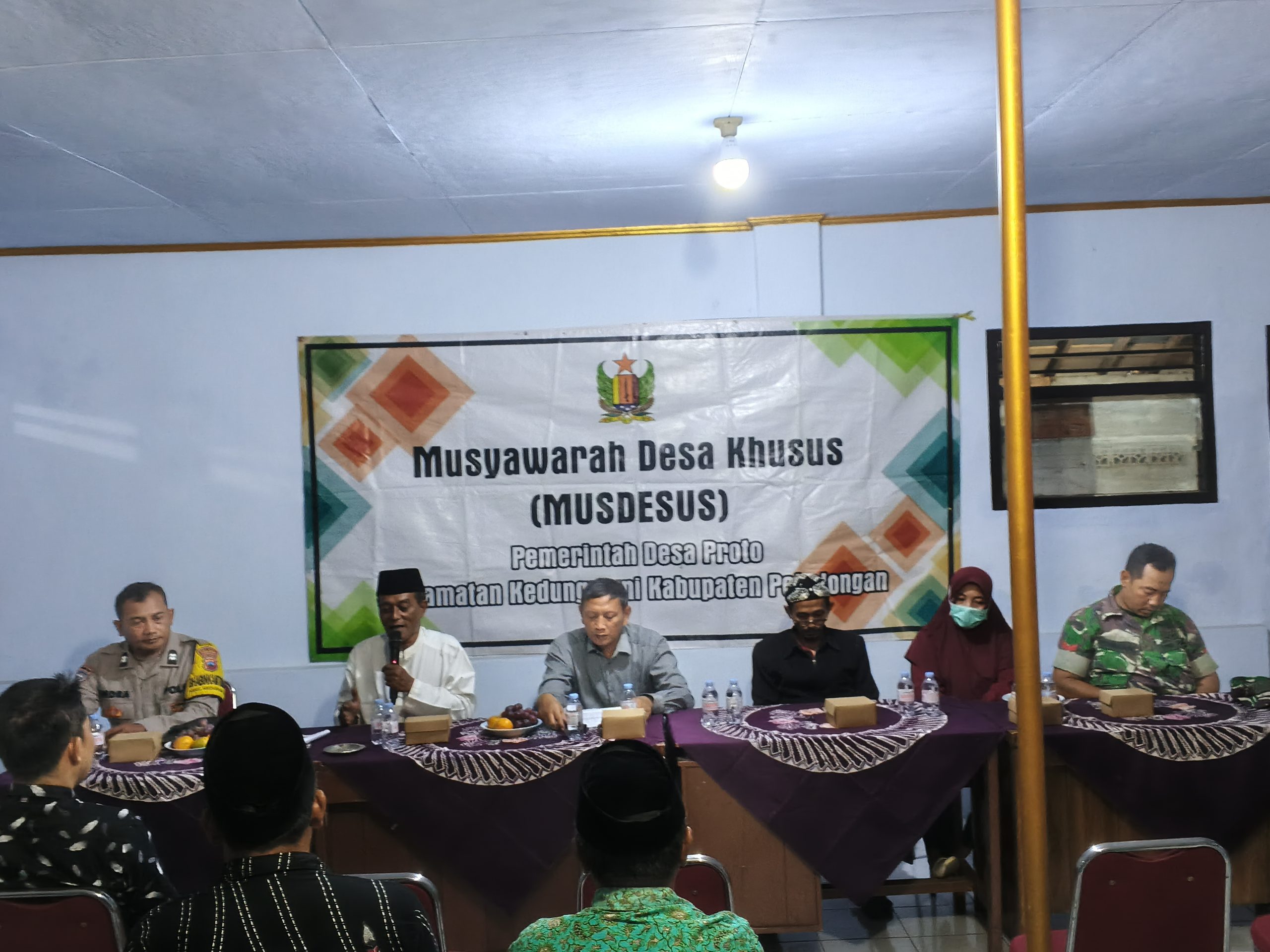 Musdesus ini dihadiri berbagai pihak, mulai dari Pj Kades Proto, Muh Taufik, Kasi PMD Kecamatan Kedungwuni, Risna Mulida, Sekretaris Desa Proto Zimam, hingga perwakilan masyarakat, Babinsa, dan Babinkamtibmas.