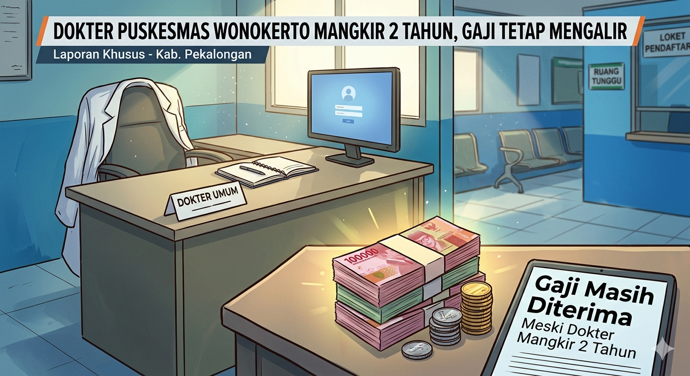 Pekalongan, Pejuang24.com – Jagat media sosial dan warga Kabupaten Pekalongan dihebohkan dengan dugaan adanya seorang oknum dokter umum di Puskesmas Wonokerto yang mangkir kerja selama dua tahun. Meski tak pernah menginjakkan kaki di tempat tugas, dokter berstatus ASN tersebut dikabarkan masih menerima gaji utuh dari negara.