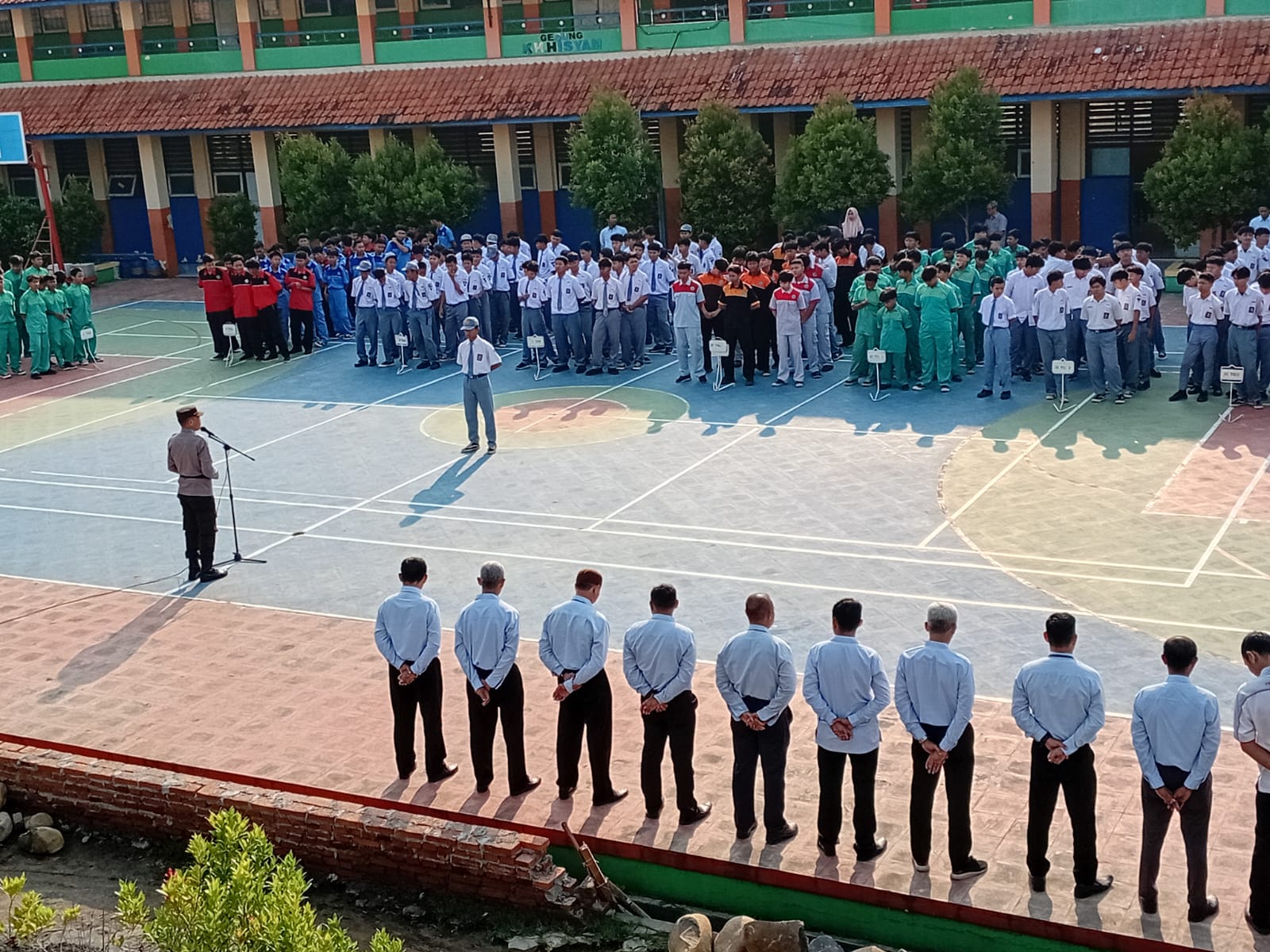 Kasat Binmas Polres Pekalongan Kota, IPTU Budi Winarso, S.H., bertindak sebagai pembina apel memberikan pesan kamtibmas kepada 460 siswa, para guru dan staf sekolah.