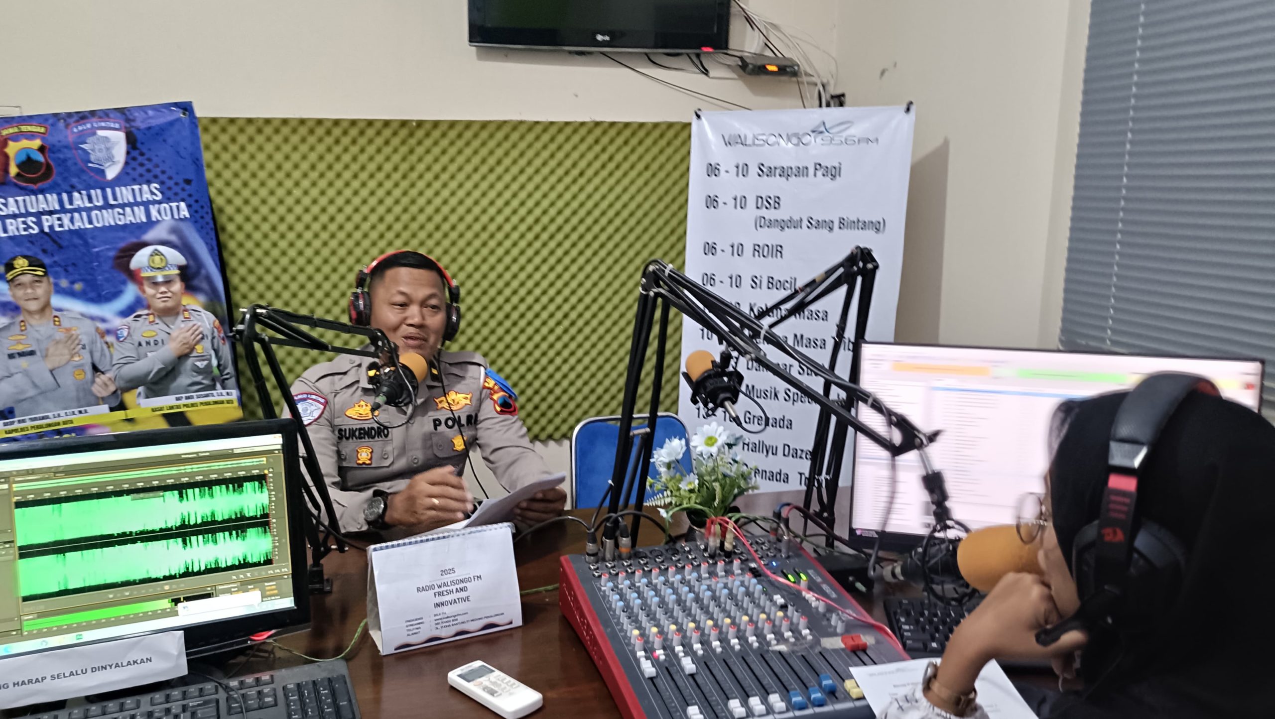 Acara yang dipandu penyiar Saudari Luluk tersebut menghadirkan Kanit Kamsel Satlantas Polres Pekalongan Kota Ipda Sukendro, S.H., selaku Kasubsatgas Dikmas Lantas sebagai narasumber.